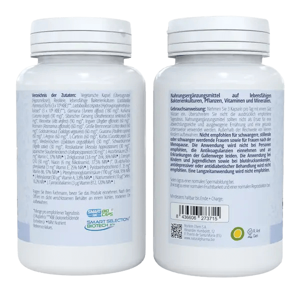 Favorece la espermatogénesis normal y fortalece el sistema inmunológico. Además, actúa como un potente antioxidante que aumenta la energía masculina. Formulado con vitaminas, cultivos de probióticos específicos, selenio, zinc, l-arginina y lcarnitina, nuestro suplemento apoya la salud reproductiva masculina, mejorando la calidad de los espermatozoides y promoviendo una fertilidad óptima.